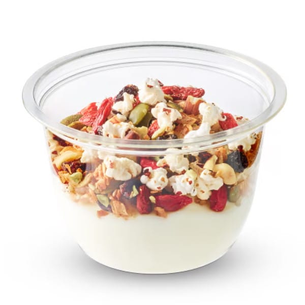 (De granola wordt in een apart potje verpakt, zodat deze krokant blijft)